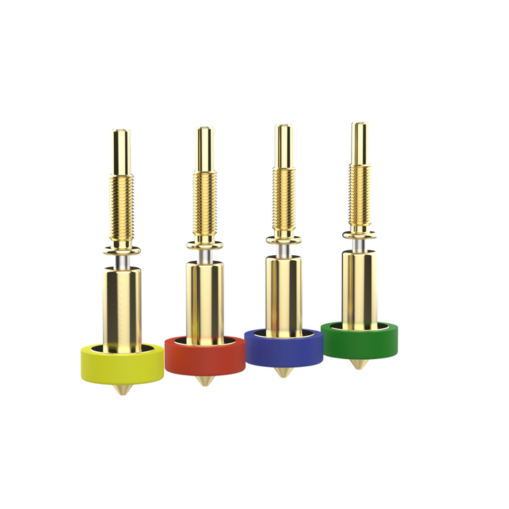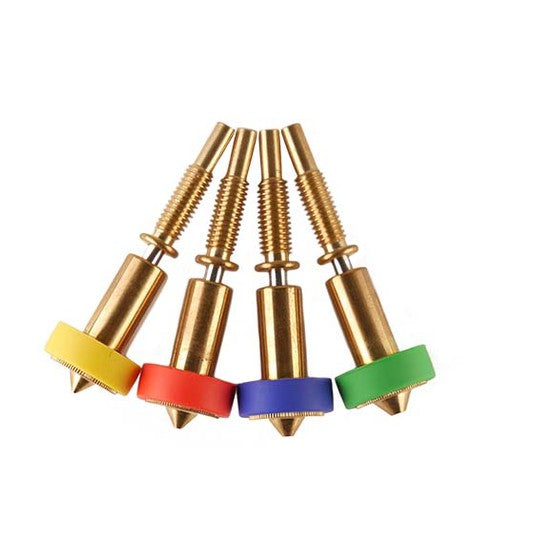 Une gamme en expansion. Nous sommes prêts à fabriquer des buses RapidChange dans toutes les tailles. Pour commencer, nous proposons des buses en laiton aux tailles 0,25 mm, 0,4 mm, 0,6 mm et 0,8 mm, avec de nombreuses autres buses compatibles à venir plus tard. Des variantes résistantes à l'usure et à haut débit sont déjà prévues et suivront avec le temps.