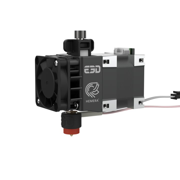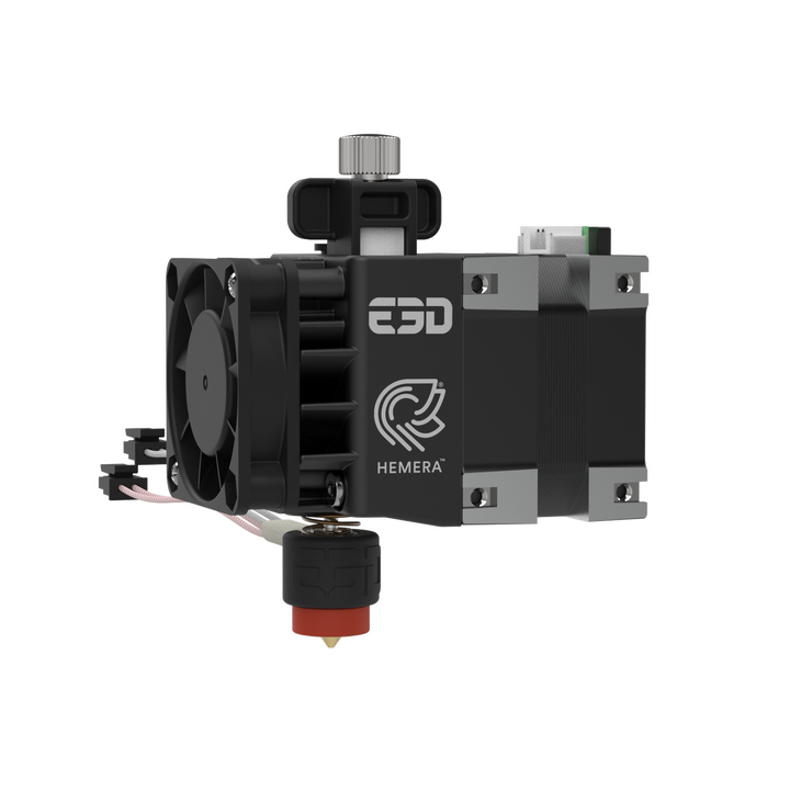 Hemera est compatible avec les configurations Bowden et à entraînement direct. Ajoutez simplement un adaptateur Bowden (vendu séparément), et votre Hemera devient un entraînement de filament Bowden puissant.