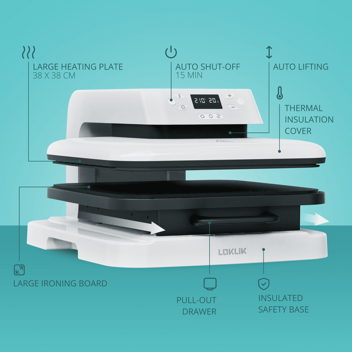 Libérez votre créativité avec la presse à chaud automatique LOKLiK ! Cet appareil innovant vous permet d'appliquer facilement des transferts thermiques sur tous vos tissus préférés. Parfait pour personnaliser t-shirts, sacs et bien plus encore. Quel que soit le produit que vous souhaitez créer, avec les quatre modes préréglés, deux préréglages personnalisés ou le mode automatique pour la production en série, vous trouverez toujours les bons réglages. La presse à chaud automatique LOKLiK garantit des résultats impressionnants avec un minimum d'effort.