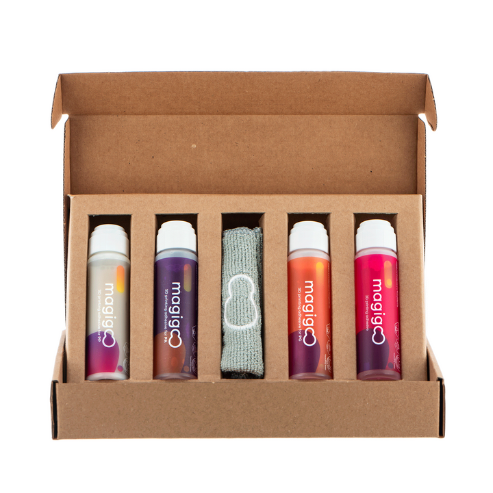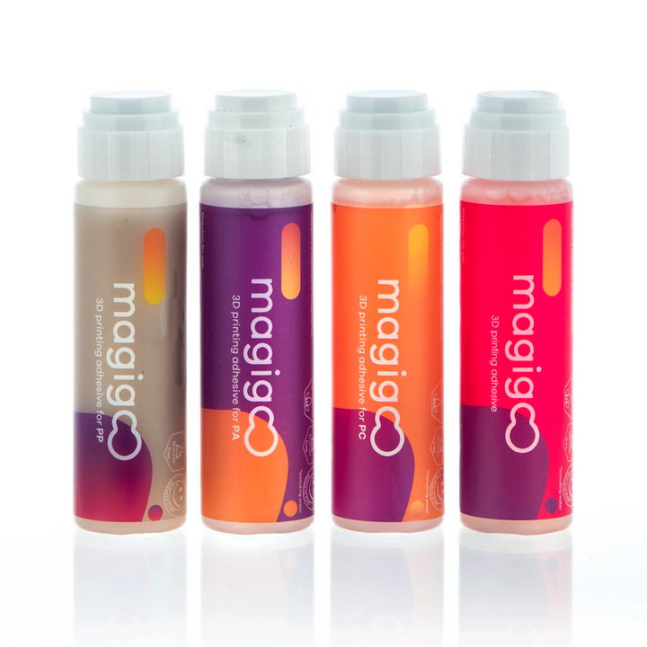 Le Magigoo Pro Kit offre une solution sur mesure pour différentes familles de filaments afin d'assurer une adhérence optimale et un retrait facile :