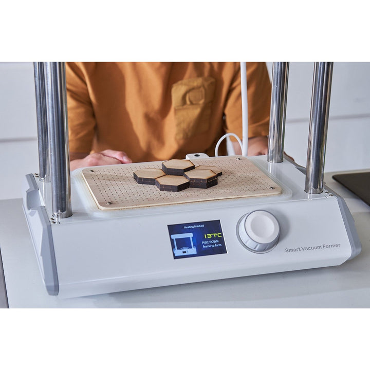 Le FORMART S offre des résultats détaillés grâce à sa pompe à vide puissante et son contrôle intelligent de la température – des prototypes aux projets créatifs de bricolage. La fonction de préchauffage et de déshumidification optimise la qualité du matériau et empêche les bulles d'air. Grâce aux modes général et expert, l'appareil convient parfaitement aux débutants comme aux utilisateurs expérimentés.