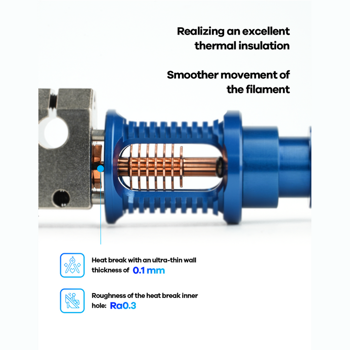 - Épaisseur ultra-fine de la paroi du Heat Break de seulement 0,1 mm pour une excellente isolation thermique.