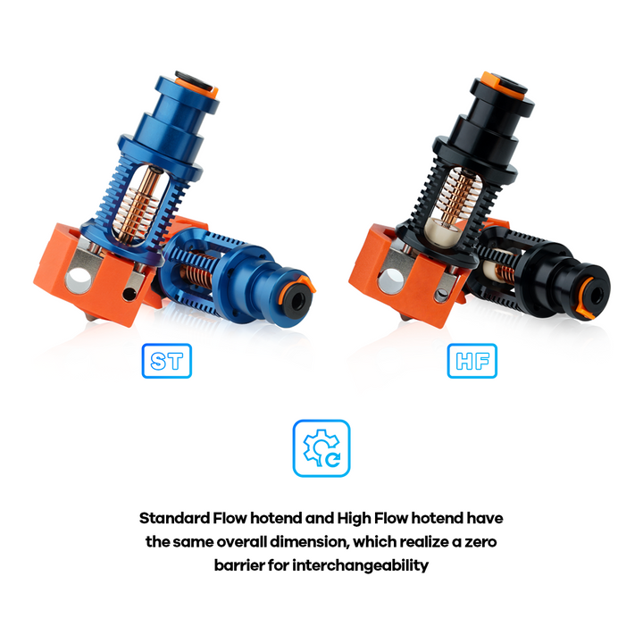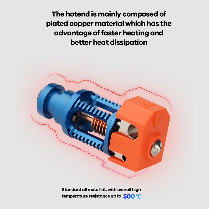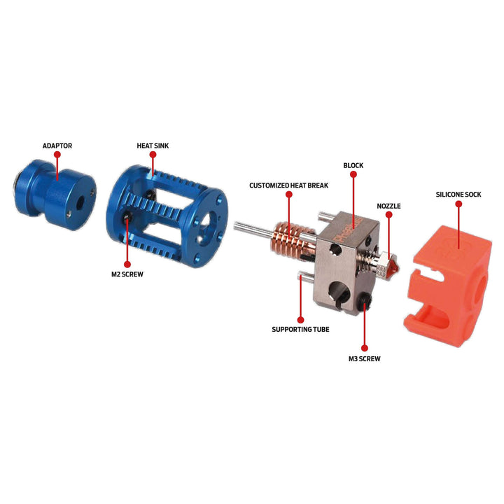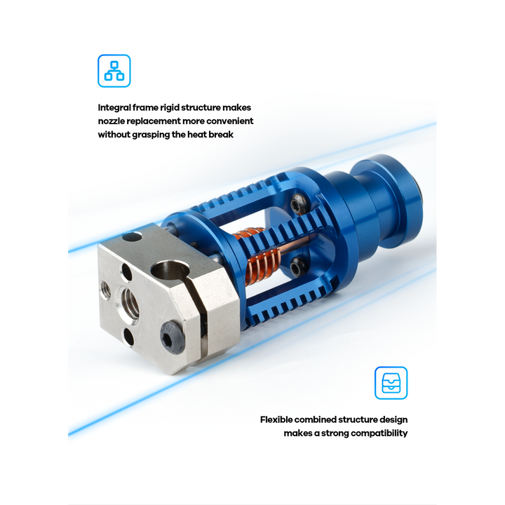 - Diamètre intérieur de la buse et du Heat Break de 0,4 mm pour un flux de filament fluide et des résolutions d'impression plus élevées.