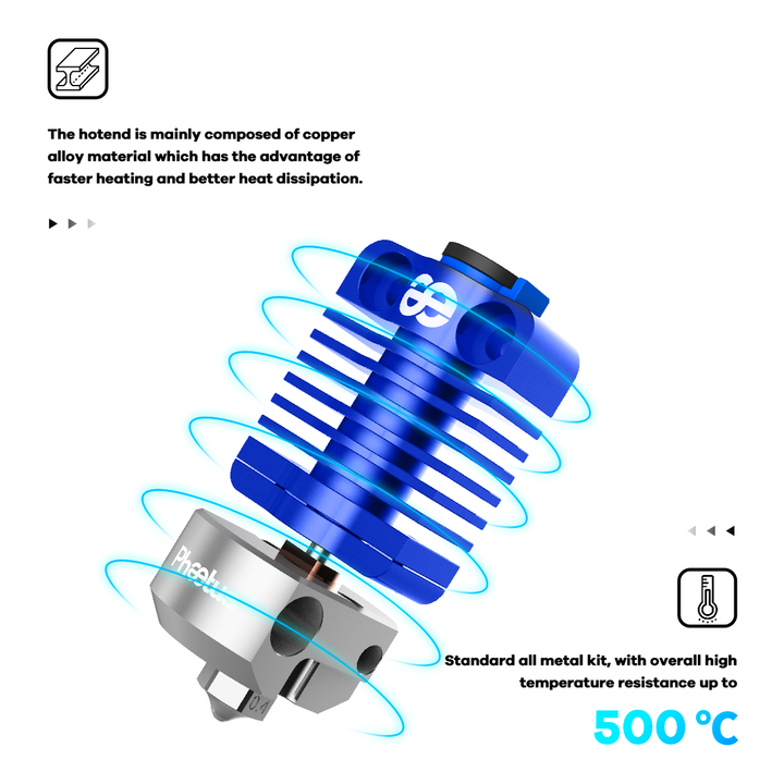 - Connexion conique entre le heatbreak et le dissipateur thermique assurant une dissipation thermique optimale.