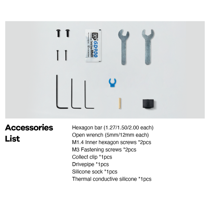 Le Phaetus Dragonfly Hot-End BMS comprend les accessoires suivants :