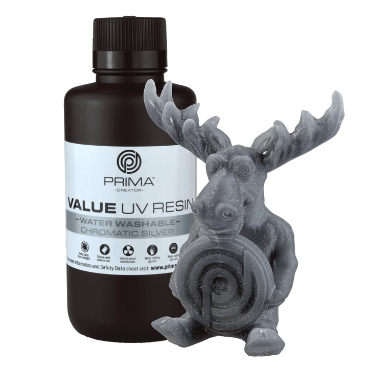 PrimaCreator Value résine UV lavable à l'eau - 500 ml - Argent Chromatique