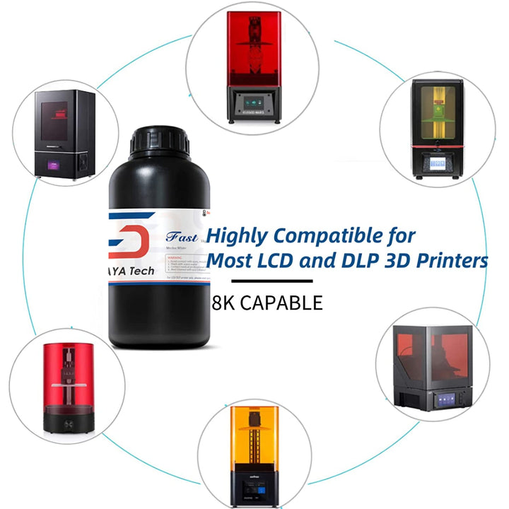 La résine est compatible avec une grande variété d'imprimantes 3D LCD et DLP courantes et offre une haute résolution tout en assurant un traitement rapide.